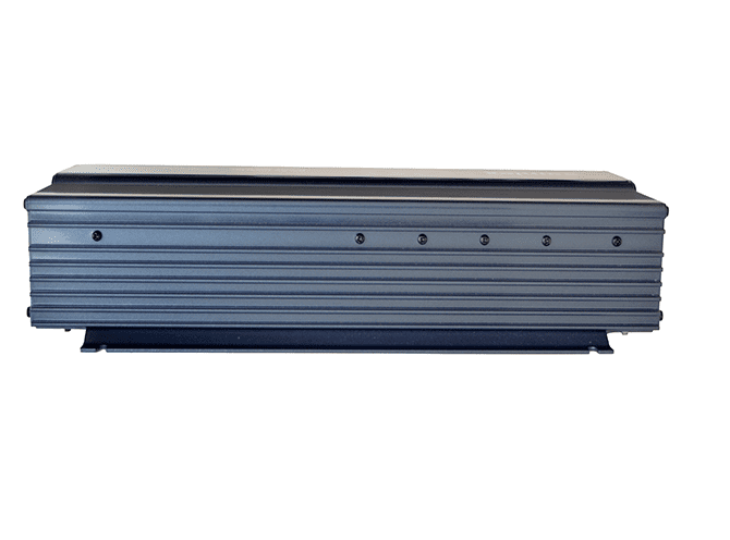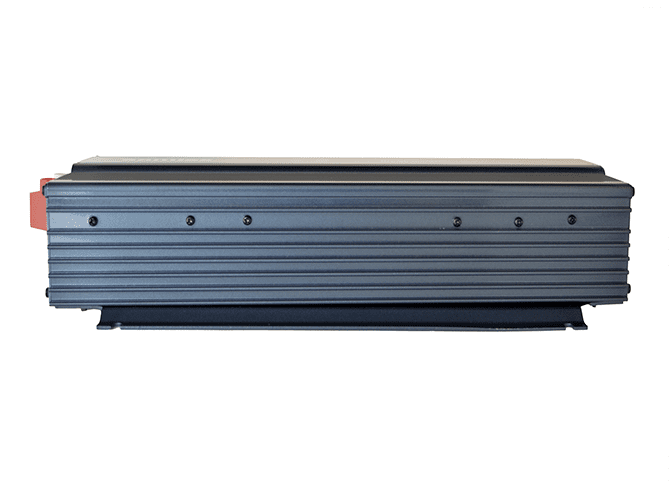 This high efficiency DC-AC inverter converts 24 Volts DC to 1000 Watts of pure sine-wave AC power at 120 Volts, 60 Hz. Features include overload protection, low battery alarm / shut down, low idle power draw. AC power is available from a NEMA-20R GFCI duplex outlet on the front panel. Safety certified to UL standards.