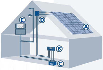A solar home system consists of a solar charge controller, one or more solar modules, a battery and the connected loads. The solar charge controller is connected directly to the battery using as short a cable as possible, and fixed to the wall near to the battery, so that it can be effectively cooled by the passing air flow. In principle, the battery is always connected to the charge controller first. Then the solar module field is connected to the solar module input of the charge controller. Only direct current loads are used in solar home systems. They are connected directly to the load output of the charge controller. This means the Steca solar charge controllers always show the exact charge status of the battery, and thus ensure optimal battery maintenance in all situations. Various Steca energy-saving lights, Steca solar cooling units, DC-to-DC converters and other appliances can be used. The Steca solar charge controllers control the energy flow of the entire system. They make sure that the solar module charges the battery quickly and effectively, but they also protect the battery against overcharging. If the loads discharge the battery, the charge controller, thanks to its precision in calculating the charge status, switches off the load at exactly the right moment, thus protecting the battery from the dangers of deep discharge.