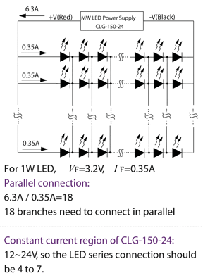 - Verify your design of LED driving circuit: direct drive by PSU [choose a constant current (C.C.) mode LED power supply] or add additional driving 1C to get a more precise constant current level [choose a constant voltage (C.V.) or constant current (C.C.) mode LED power supply].